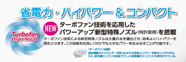 - 節電機能を搭載 ターボファン技術を応用して、パワーアップ新型特殊ノズルを搭載、ランニングコストは従来の1/3で電気代を節約することができます。