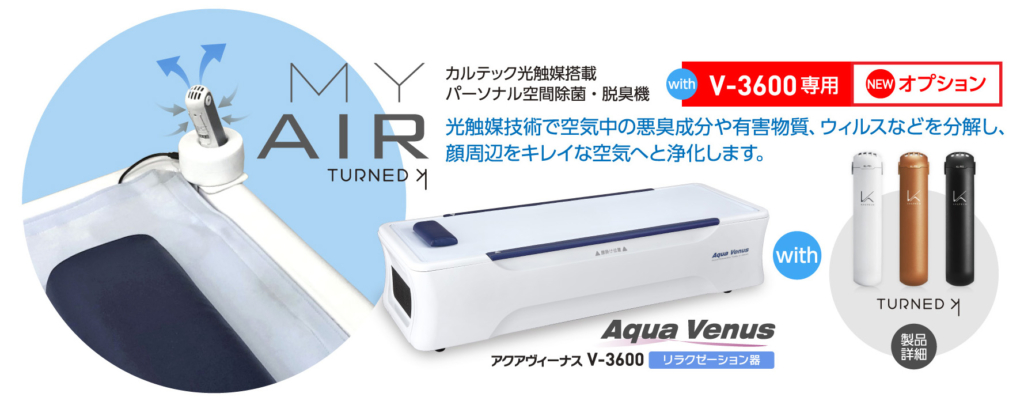 また、ウォーターベッド型器機は人体振動理論がエビデンス、水圧振動による全身型ウォーター・リラクゼーションベッド「アクアビーナスV-3600」です。